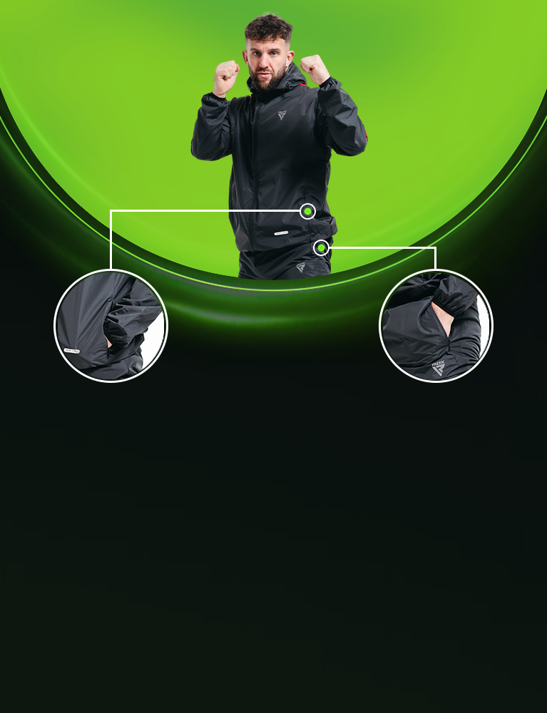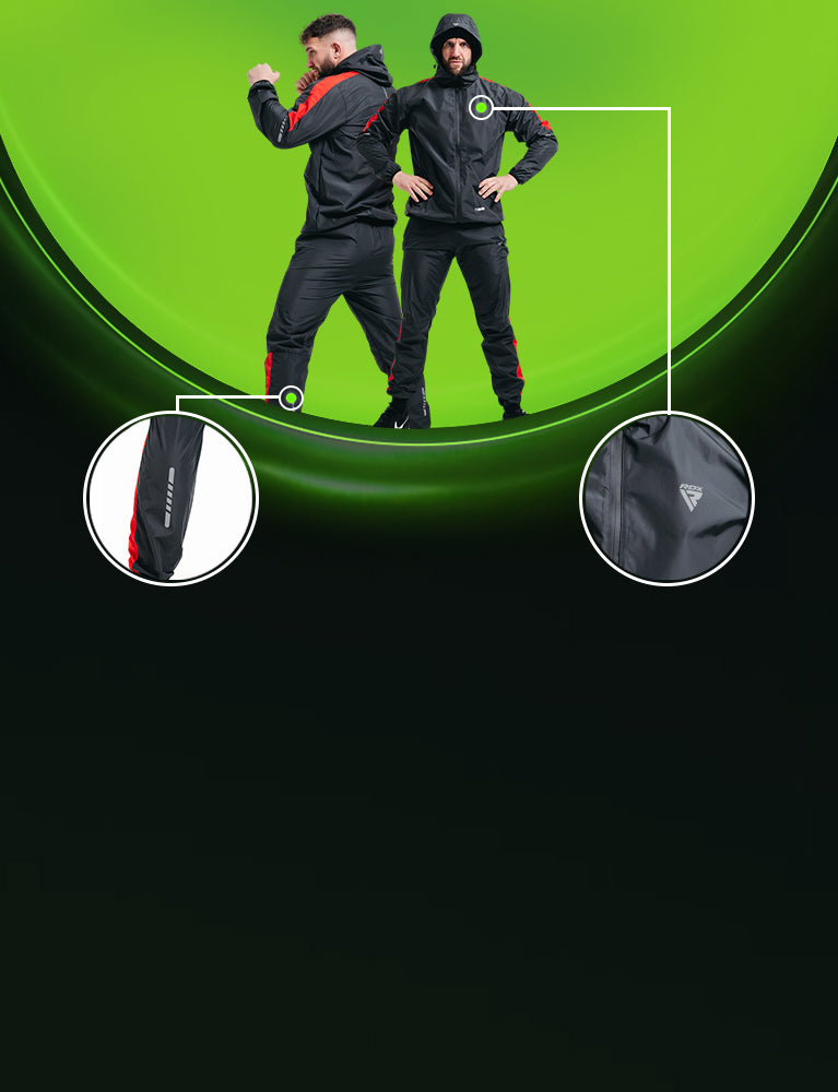 Indulge in eco-conscious fitness with the RDX H1 Sauna Suit. In compliance with OEKO-TEX 100 and REACH standards, this eco-champ uses a unique PU-coated silver inner lining in Instant Sweat Fabric, core to Heat Suit Tech. Enjoy free movement, enhanced visibility via reflectors, and excel in various workouts. Master efficient perspiration in eco-luxury with the advanced H1 Sauna Suit from RDX Sauna Range 2.0.