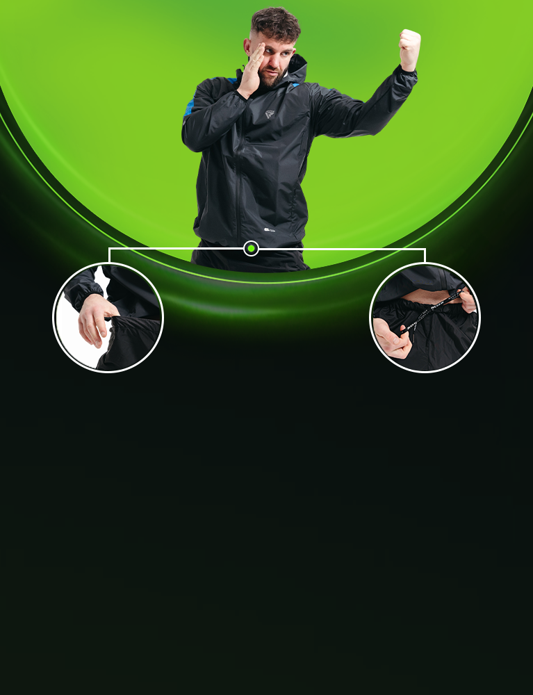 - Elasticated cuffs and ankles trap heat for optimal perspiration.