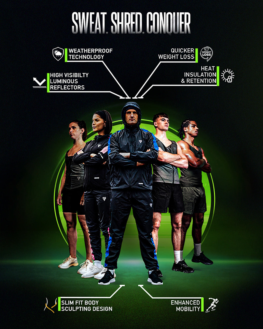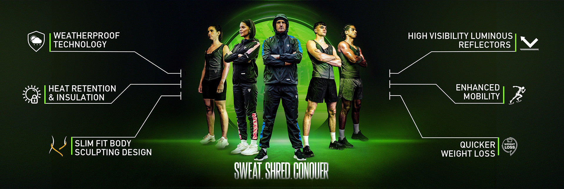 - 5x sweat power unleashed with Instant Sweat Fabric and Heat Suit Tech's silver lining.
