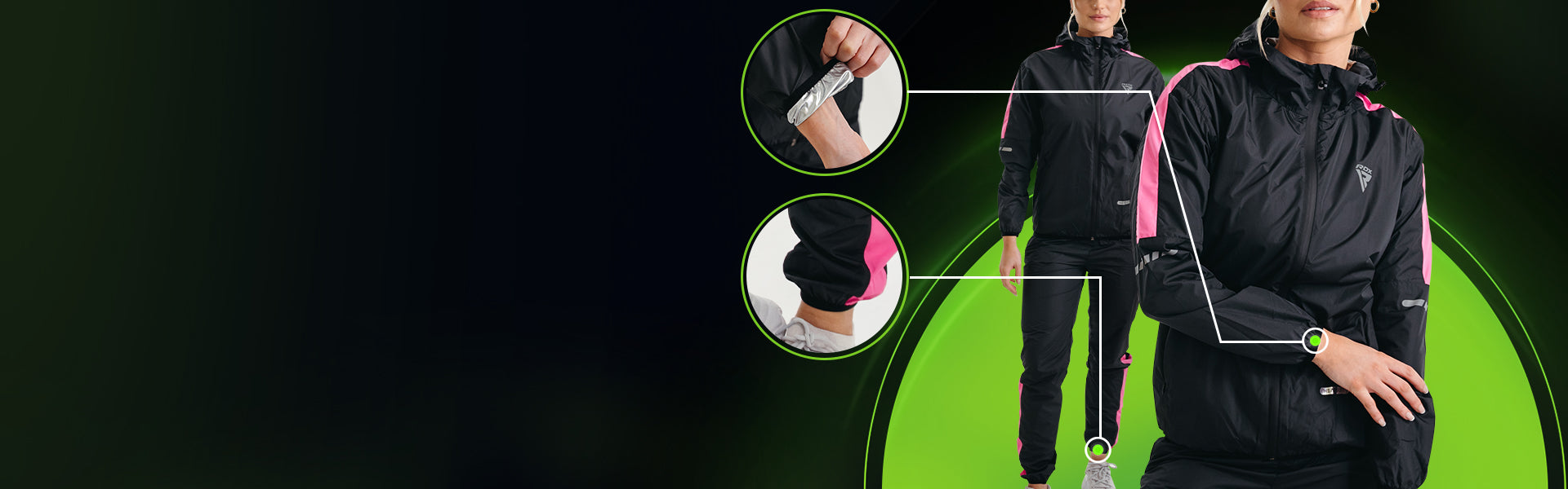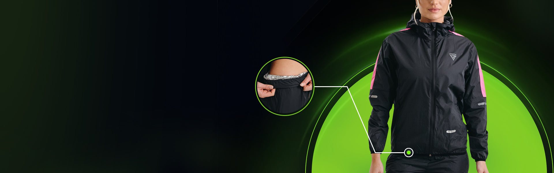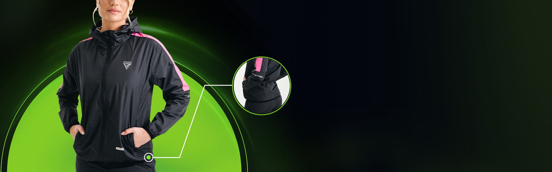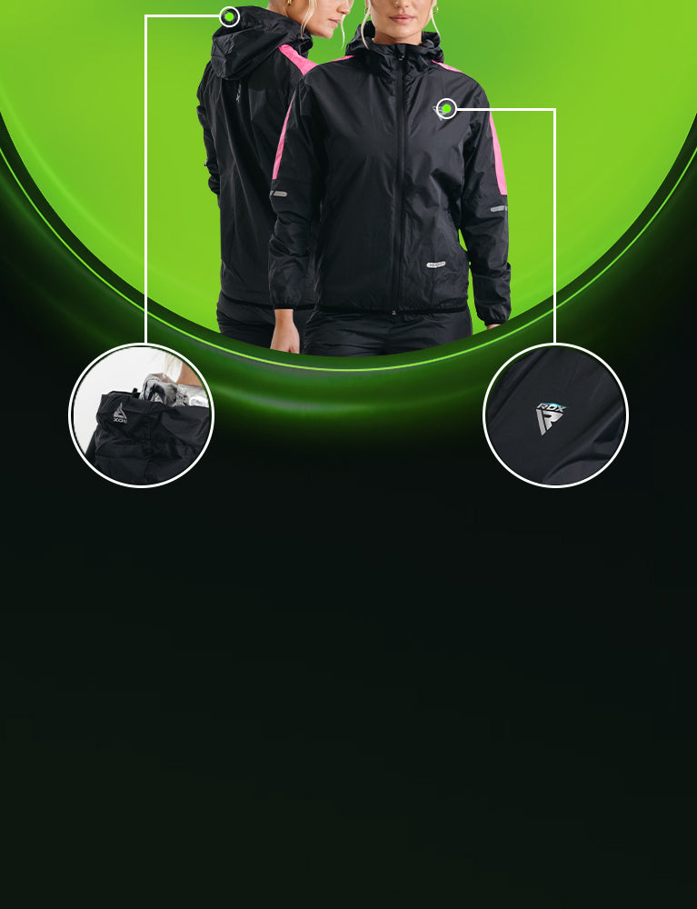 Embark on a sustainable fitness journey with the RDX H1 Sauna Suit for women. Meeting OEKO-TEX 100 and REACH standards, this eco-champion features a unique silver inner lining in Instant Sweat Fabric, a key component of Heat Suit Tech. Enjoy unrestricted movement, enhanced visibility with reflectors, and excel in various workouts. Experience eco-luxury with efficient perspiration in the advanced H1 Sauna Suit from RDX Sauna Range 2.0.