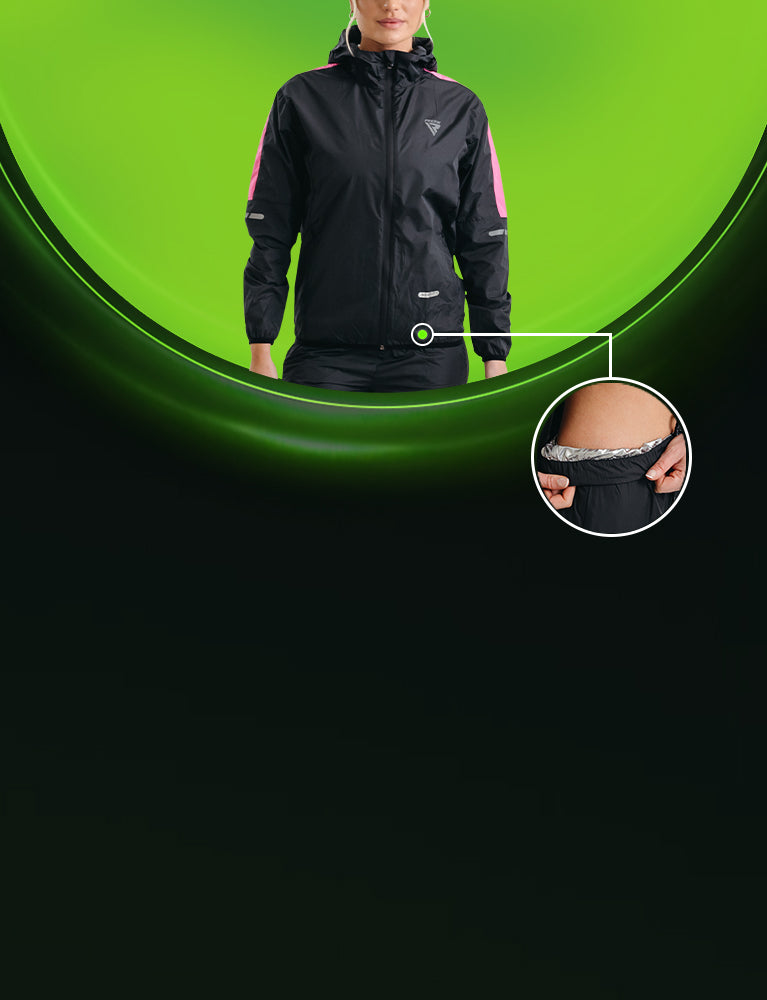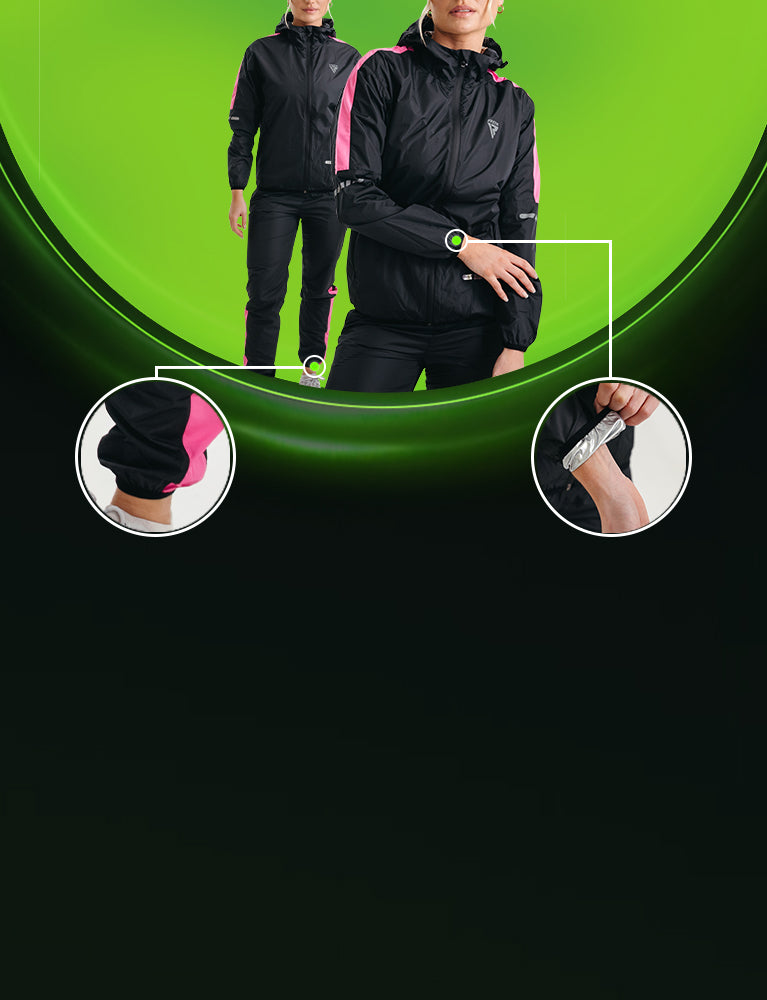 - 5x sweat power with Instant Sweat Fabric and silver lining of Heat Suit Tech.