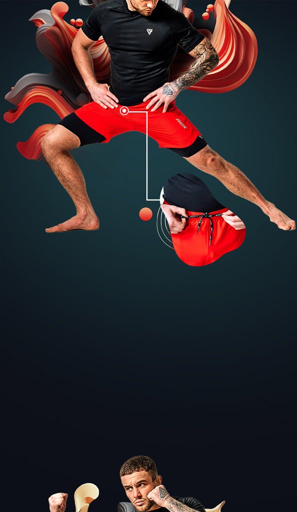 Ready to redefine your fight game? Discover the perfect fusion of performance, comfort, and style in our groundbreaking MMA shorts. The impeccable design, breathable materials, and chic details empower you for an unstoppable fight.The flexible yet snug fit supports and sustains the intense MMA maneuvering. The soft compression inner provides better flexibility and strain protection while the sweat-wicking materials ensure a comfortable experience. Not to forget the reflective logos - effortlessly merging fashion and function in every move. RDX 2 in 1 shorts act as both board shorts and compression shorts, making them the key to unlocking your hidden ferocity.
