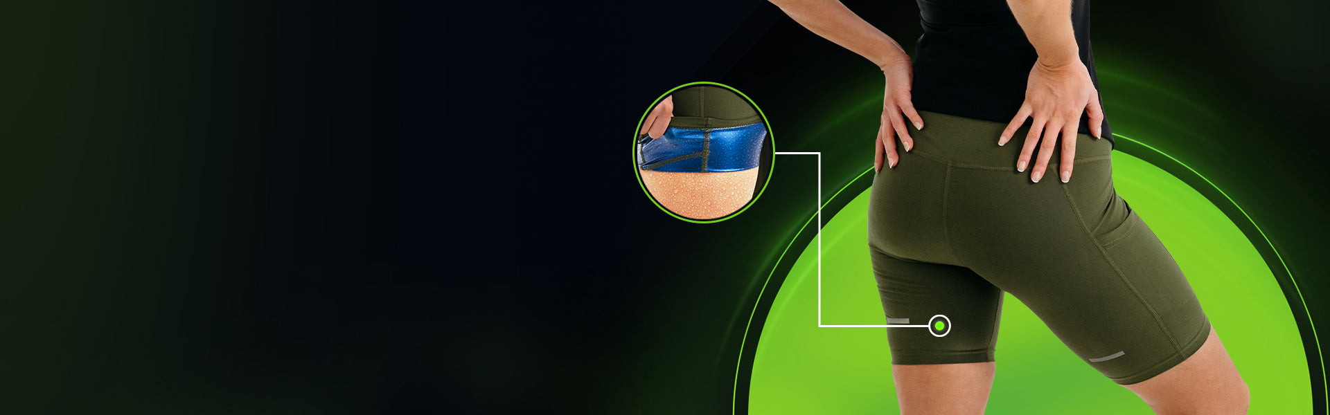- Turn up the intensity with Instant Sweat Fabric in our innovative Heat Suit Tech. Its special blue lining traps heat and boosts sweat 5x for efficient results.