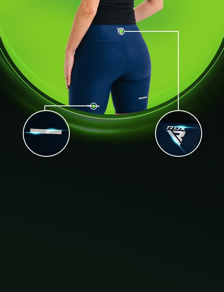 Level up your sweat game with RDX Sauna Range 2.0 women sweat shorts. Eco-savvy (REACH & OEKO-TEX 100!), they unleash a 5x sweat storm with Heat Suit Tech's blue lining. Flex freely with the stretchy blend, stay seen with reflective bits, and conquer marathons or HIIT these versatile wonders have your back (and legs!). Sweat smarter, not harder, in eco-chic style.